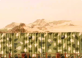 蓝圈装配式消防站是由集装箱、钢结构等模块打造而成,集“占地少、建设快、可移动”等多重优势于一体,包含消防车库、器材库、值班室、消防队员住宿、办公场所、餐厅等功能的装配式模块化执勤设备。该消防站共计20个集装箱,实际使用面积500m²,可供2辆消防车停放,供20名-30名消防员执勤工作。